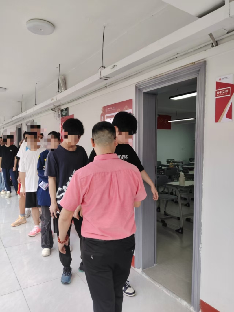 作为市研究院”分层管理,以校为主”原则的践行者,我校严格遵循统一部署,提前制定详实考务方案。教务处联合年级组完成考场布置、试卷保密、监考培训等全流程管理,确保考试与市级标准无缝衔接。考场内,考生单人单桌、间隔就座,金属探测仪全程启用,监控设备全覆盖记录,展现严谨规范的考试风貌。